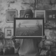 Our Picture Frames are made from real wood and come in a limed white or black. The moulding is approximately 2cm wide at the face. Our frames are beautifully finished on the back with tape and hanging brackets. Our glazing is shatter-proof acrylic - we do not use glass for safety purposes and for trouble free shipping.